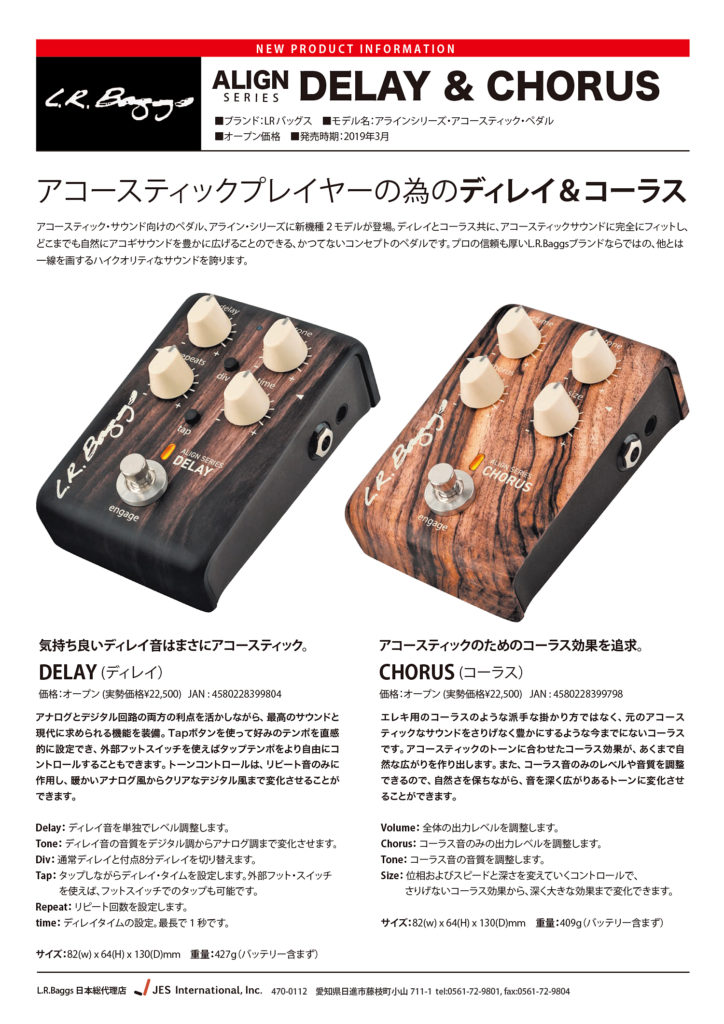 アコースティック楽器用ChorusとDelayが近日発売