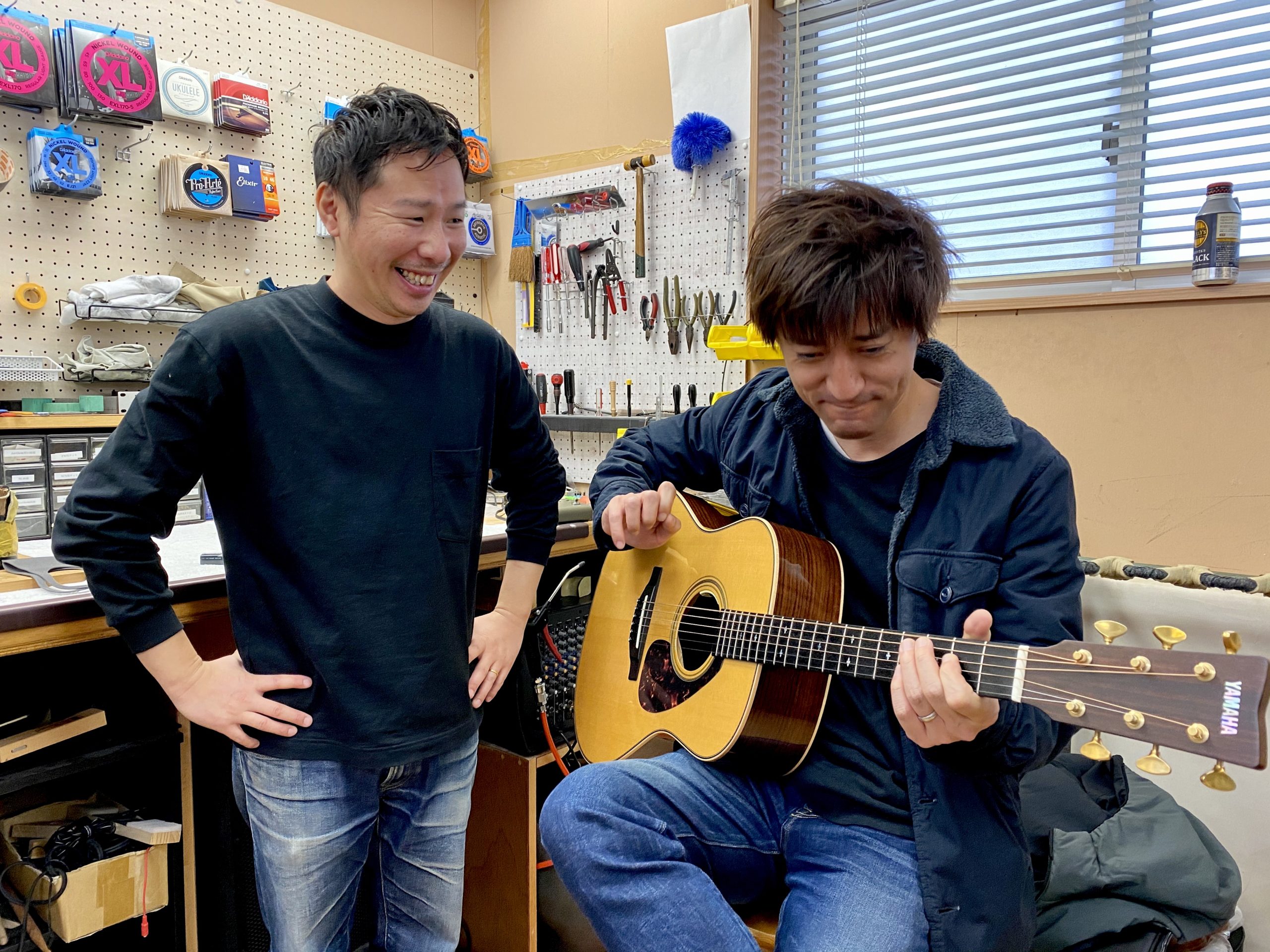 各方面で活躍中のギタリスト山田豪氏が使用するYamahaのアコギに取り付けられているLR Baggs Anthemの調整メンテで来社。