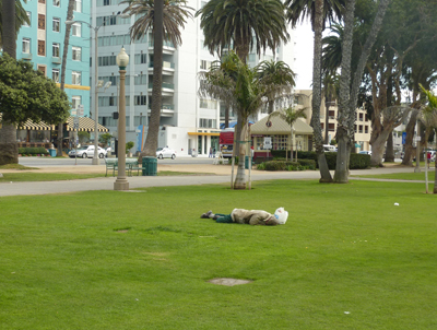 この辺りはサンタモニカ・ダウンタウン地区、観光客で賑わっています。