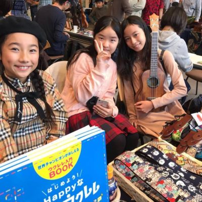 このブースをコーディネートしたのは、KUMU UkuleleのアンバサダーのJazoom Cafeさん(教室名はハピレレ)。彼の可愛い生徒さんたちも手伝ってくれました。