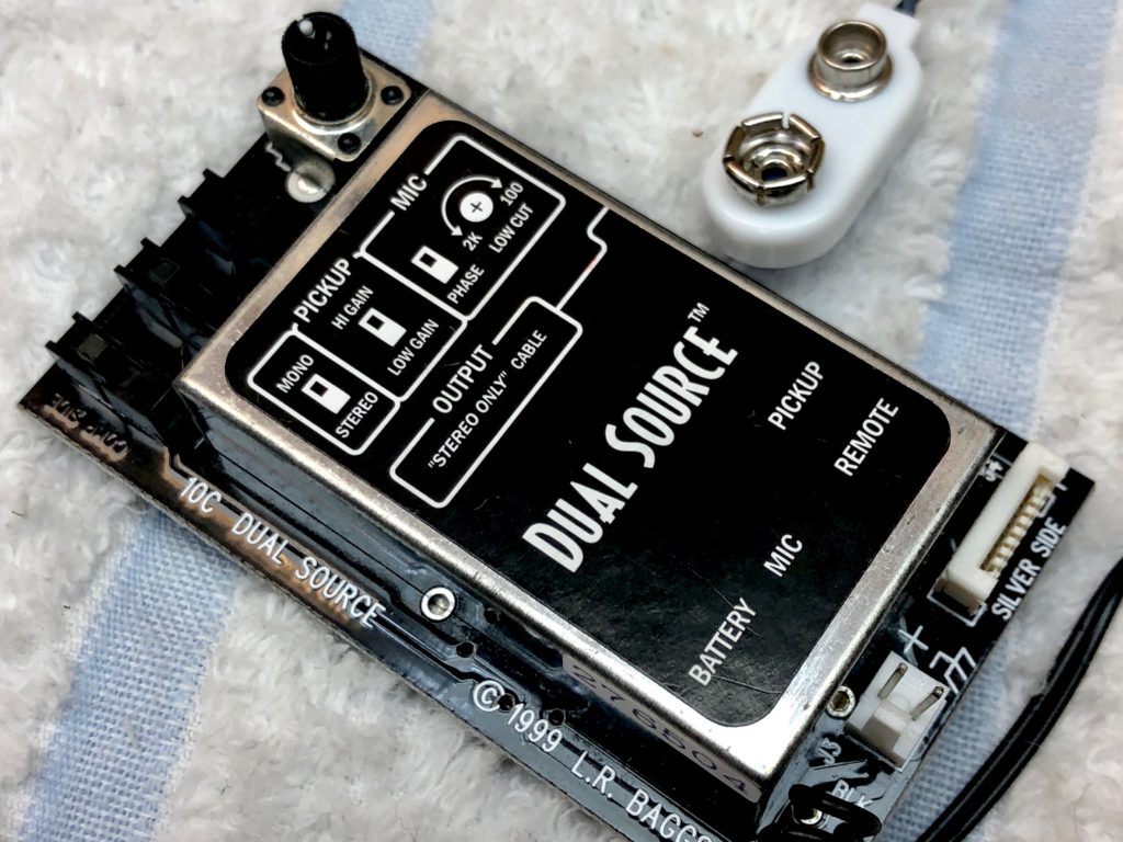 アコースティックギターのレコーディングでは、以前より2つのマイクを使うのが一般的。使用するアコースティック楽器固有のサウンドとダイナミクスを再現するのに最も適している手法です。1990年代に、いちはやくその考えを元に製品化したのがL.R.BaggsのDual Source。2つの入力ソースで(アンダーサドルPUとコンデンサーマイク)でブレンドをしてギターの持つサウンドを忠実に再現、しかもライブの環境でも使える画期的なシステムとして紹介されるや多くのアーティストが絶賛、使用することになりました。
