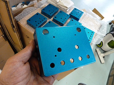 昨日お伝えしたChirolynさんのレポートの通り外観を除いて完成となりましたが、今日は待ちに待った本体ケースの塗装が数個上がって来ました。カラーは塗装屋さんとの何度かの打ち合わせでオリジナルのカラーを作ってしまいました。カラー名は「オーロラブルー」。非常に鮮やかなブルーですが、暗めのところで見るとグリーンに見えるという、まさにオーロラのように変化する非常にスペシャルなHAO独自のオリジナルカラーです。