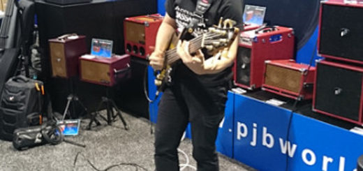 新製品で沸くPJBブースですが、日本から参戦した「ベースニンジャ」こと今沢カゲロウさんがデモを行いました。 ベース一本で多彩な音を重ねて独特な音楽を展開、世界を...