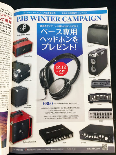 色々と話題の多いフィル・ジョーンズ製品の特別なPJB WINTER CAMPAIGNの広告もこの号に載りました。この機械にぜひPJB製品をお求めください。PJB特約店での購入者のみが対象となりますのでご注意ください。