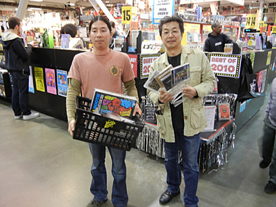 Tito PuenteなどのラテンもののレコードやCDを大量にカゴで大人買い。