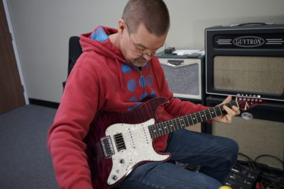 ロイが弾いているのは今回NAMM初お目見えのIcon Classic in Distress, Level 2。