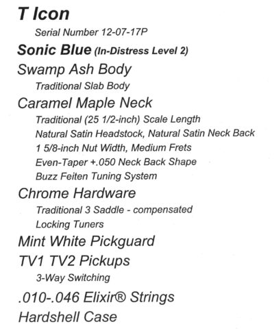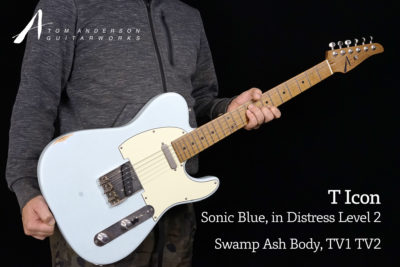 NAMM2018で初デビューIn Distressフィニッシュ !NAMM2018で初お目見えのIn Distressは実際に使用されたビンテージルックスを意図したカスタムフィニッシュです。基本となるモデルはビンテージTスタイルのT Icon, Sonic Blue。