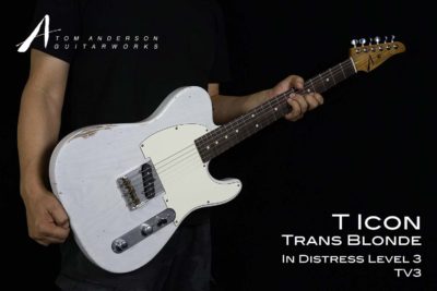 そしてIn Distressというビンテージギターのような傷のある外観。そうですTomでもここまでやっちゃうんですよ。今年1月のNAMMショーから新登場のカスタム仕様です。ダメージ度合いによってLevel 1, 2, 3となります。このT IconはIn Distress Level 3の一番使用感の高いレベル。イメージ的には60sあたりでしょうか。