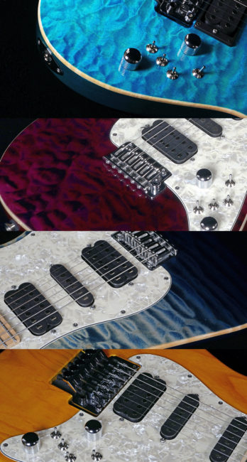 同じように見えて材、ピックアップ、コントロールなどの仕様が微妙に違い、各モデルはそれぞれ独自の個性を持ったギターです。興味のある方は上記納入店にお問合せください。
