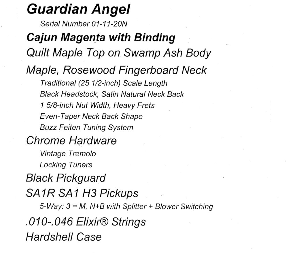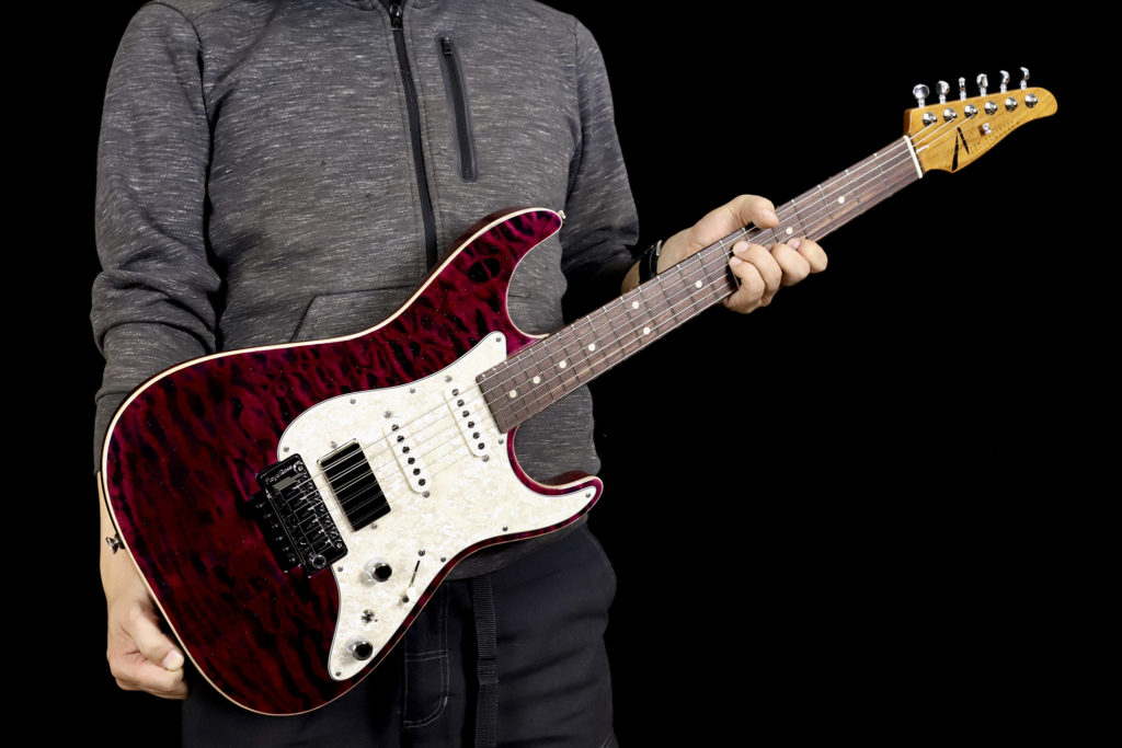 DROP TOP CLASSICのようで、実は24フレット仕様ピックガード付のGUARDIAN ANGEL。シンプルなルックスながら多彩のサウンドバリエーションは、Tom Anderson定評のカスタムワイアリング。