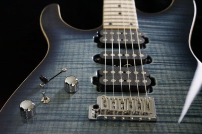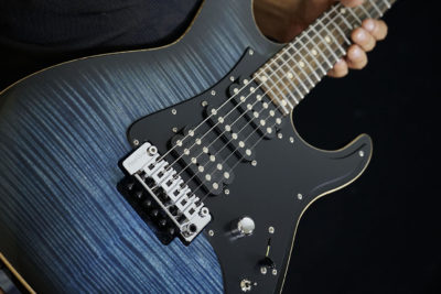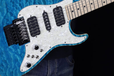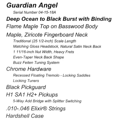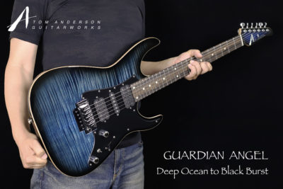 名前の通り深海をイメージした、Deep Ocean Blue to Black Burst。モデルは24フレット・ピックガード付きのGuardian Angel。
