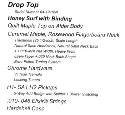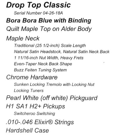 ブルー系の中でもTom Andersonカラーとも言える代表的なフィニッシュ、Bora Bora Blue。モデルはDrop Top Classic。