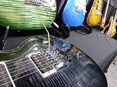 今 回トムアンダーソンギターの出展ギターはショー前に完売。というのもUSAオーソライズドディーラーの中から選別したお店にNAMMショー用にどんなモデ ルを出したら良いかというリクエストを元に製作されたギターだったからです。(NAMMショー前にトムの工房に行った時のブログもご参照ください。)