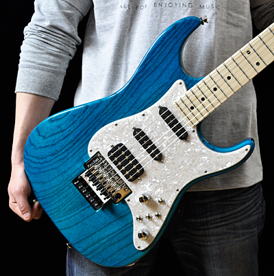Swamp Ash Body, Hard Rock Maple Neck & Fretboard, Satin Finish, 1 5/8″ in Nut, Heavy frets, Even Taper, Buzz Feiten Tuning System, Chrome Sunken Floyd Rose, Split Shaft, SA1R SA1 H3, White Pearl Pickguard, Switheroo, .010-.046 Elixir Strings.